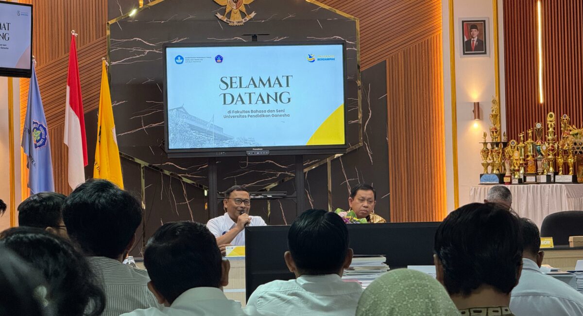 Singaraja, 8 Desember 2025 – Fakultas Bahasa dan Seni (FBS) Universitas Pendidikan Ganesha menggelar kegiatan Asesmen Lapangan (AL) untuk Program Studi D4 Bahasa Inggris untuk Komunikasi Bisnis dan Profesional sebagai bagian dari proses akreditasi BAN-PT. Kegiatan berlangsung pada 7–9 Desember 2025 di Ruang Seminar Nitisastra, Lantai 2 Gedung FBS.Dua asesor BAN-PT yang hadir untuk melakukan asesmen adalah Prof. Drs. Burhanudin Arafah, M.Hum., Ph.D. dan Prof. Dr. Baso Jabu, M.Hum. Kedatangan tim asesor disambut oleh Dekan FBS beserta jajaran pimpinan akademik.